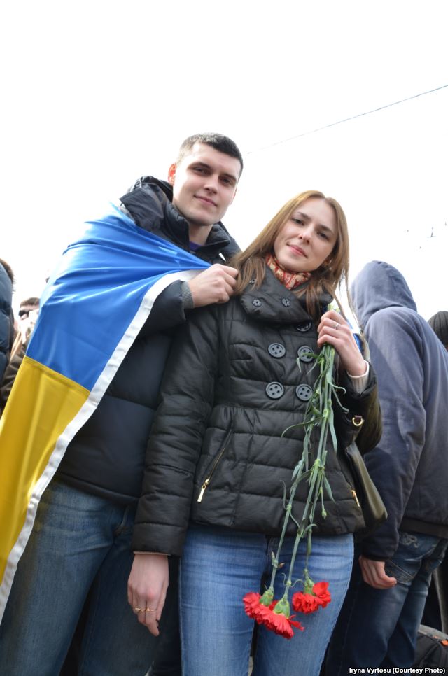 Ловлю поглядом двох молодих людей – вони, міцно обійнявшись і доповнюючи один одного, відповідають російською: “Ми, українці, і ми не хочемо в Росію. Ми там були – там багато наших родичів, приїжджали до них у гості. Але в Росії добре, може, живуть у Москві і Санкт-Петербурзі. І все… Я – Марк, я народився у Донецьку. А це – Аня, вона народилася на Півночі України. Ми уже 20 років живемо в Криму. І ніколи не відчували, що нас треба від когось захищати. Нам стало неспокійно, як тільки з’явилися “зелені чоловічки”. Ми тут, бо нас не треба ні від кого захищати“.