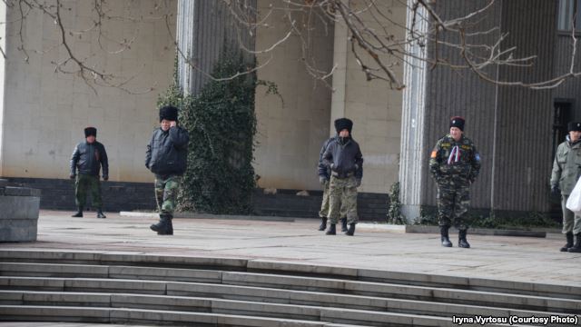 У таксі не сідали, вирішили пройтись повз військову частину на Карла Маркса, як то кажуть, щоб одразу зануритися в атмосферу. Кілька чоловіків-козаків – а так усе спокійно. Обіцяних “зелених чоловічків” поки не зустріла.