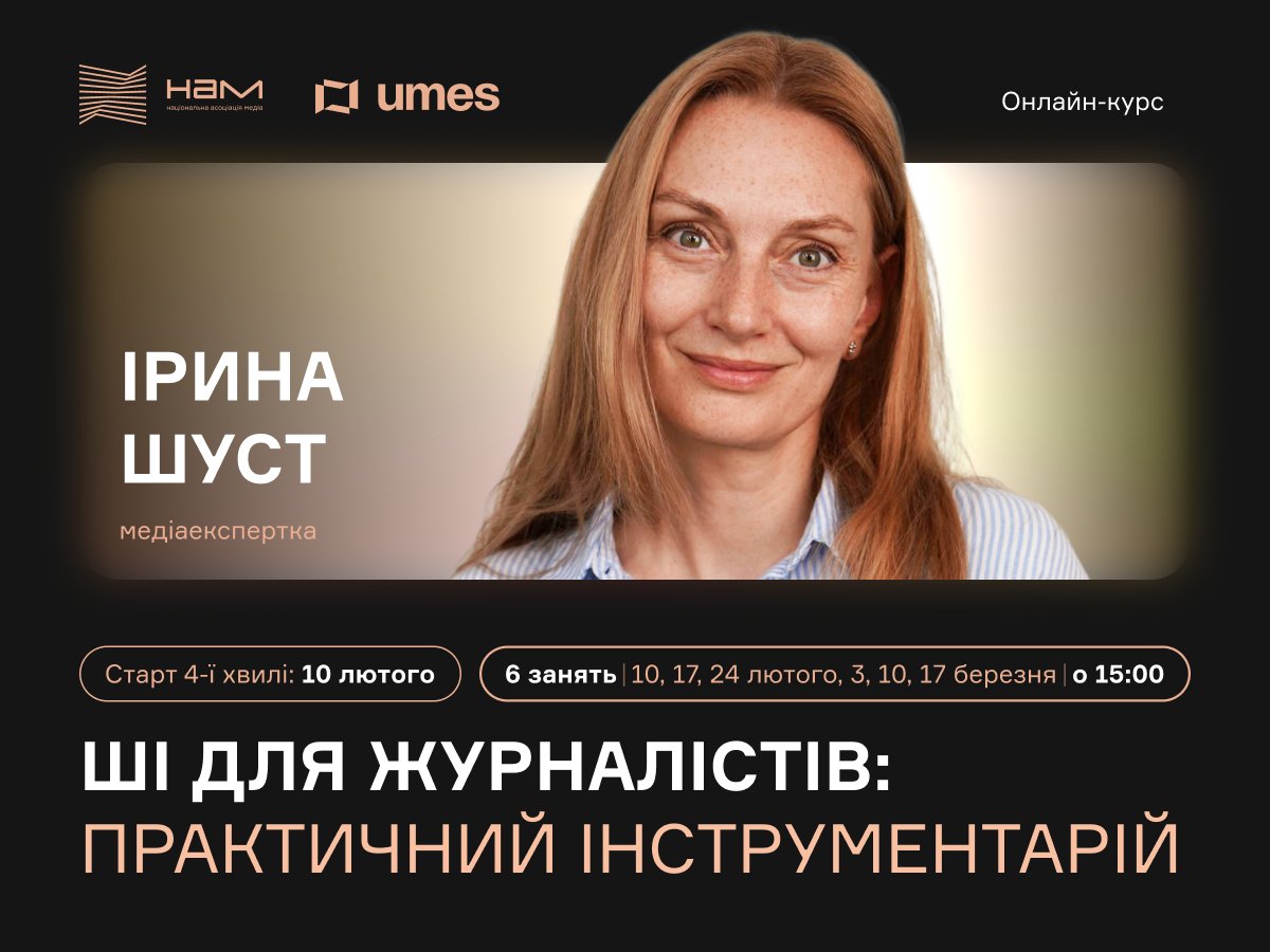 Національна асоціація медіа запускає реєстрацію на четверту хвилю курсу “ШІ для журналістів: практичний інструментарій”. Старт вже 10 лютого.