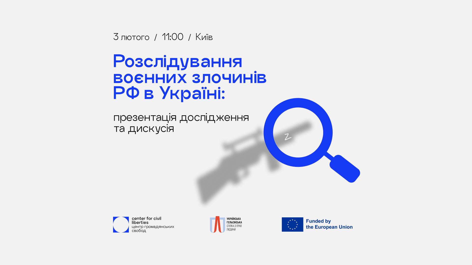Центр громадянських свобод спільно з Українською Гельсінською спілкою з прав людини запрошує на презентацію дослідження щодо ключових викликів, з якими стикаються національні правоохоронні органи під час розслідування воєнних злочинів Російської Федерації в Україні.