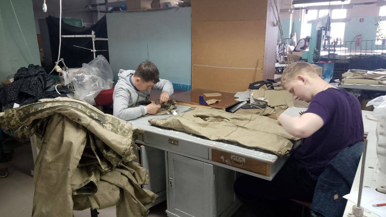 Мешканці будинку проходять стажування на місцевому підприємстві, де шиють військову форму. Хлопці допомагають обрізати нитки, складати вироби, хто сильніший – переносить матеріали.