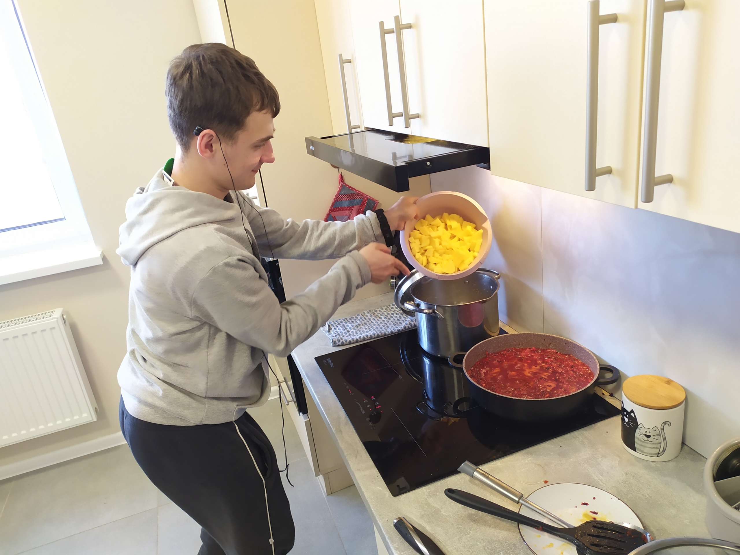 У день нашого візиту на кухні чергує Роман, який варить борщ. Дев’ятнадцятирічний хлопець – із Київської області. Він дуже веселий і жвавий.