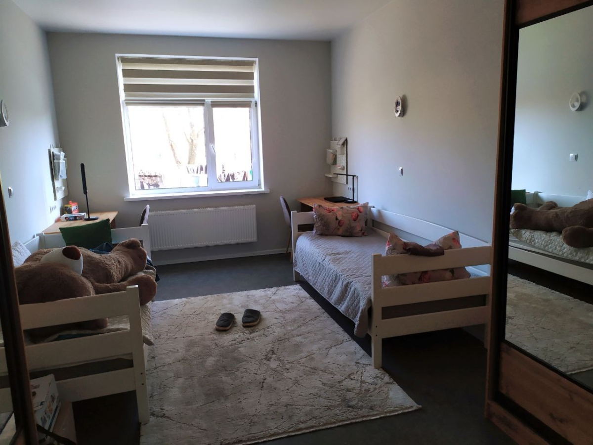 У будинку підтриманого проживання – сучасний інтер’єр у стриманих кольорах. У кімнатах – якісні ліжка, великі шафи, столи для навчання, килими на підлозі. В одній з кімнат на ліжку лежить велика м’яка іграшка-ведмідь, в іншій кімнаті на підвіконні стоять горщики з розсадою.