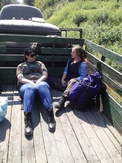 …іде щасливою. Сумки в руках. Розвантаження, каремат, спальник, бронік і далі по надиктованому списку.