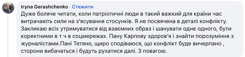 Загалом, за словами Тетяни, багато з коментаторів не знали її особисто, але без критичного мислення повірили версії посадовця, що журналістка “хайпує” на темі його здоровʼя і пише про інтимні подробиці, яких не було.