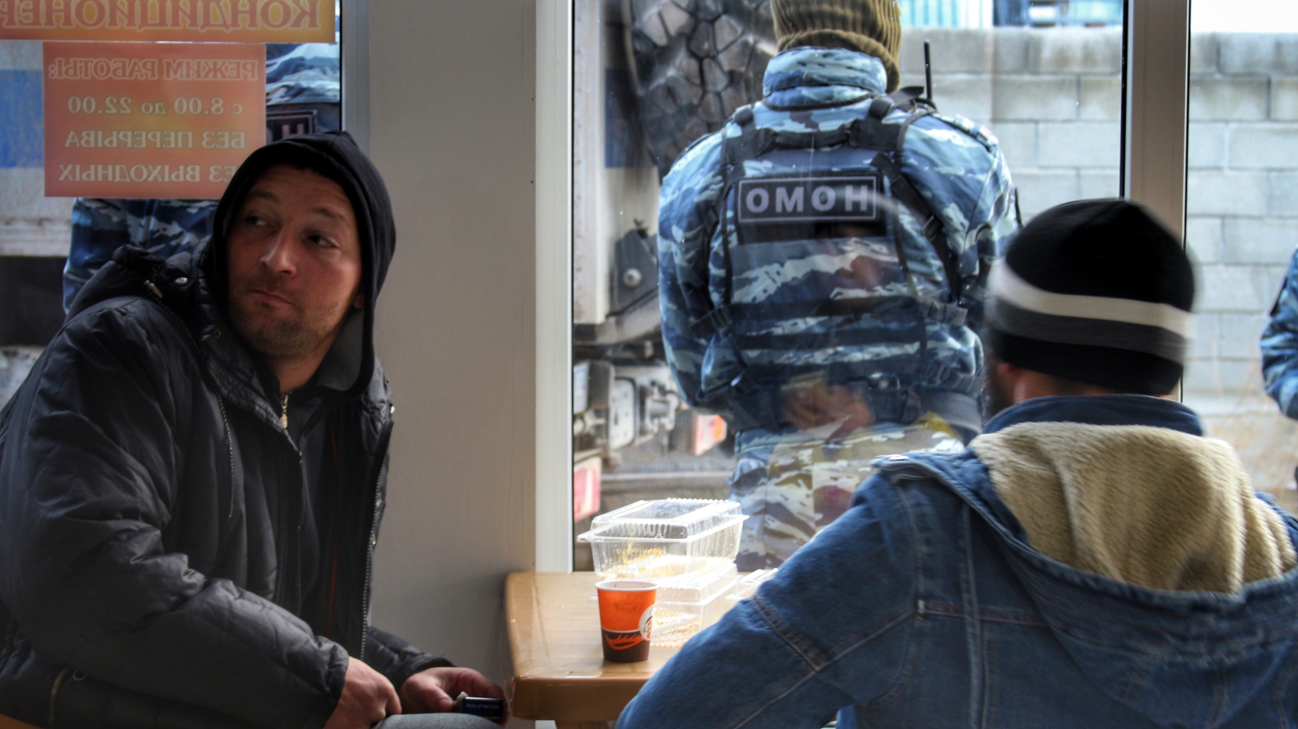 Зібрання “Кримської солідарності” в Судаку. Фото: Олександра Єфименко“Кілька годин поспіль вони переминалися, наче дурники, з ноги на ногу. Чи залякали вони когось? Ні. Чи виставили себе посміховиськами вкотре? Так”, – згадує вона і додає, що тепер у неї є в архіві купа світлин людей на тлі російського ОМОНу. У авторки цього матеріалу також є фото на тлі російських силовиків з тієї зустрічі.