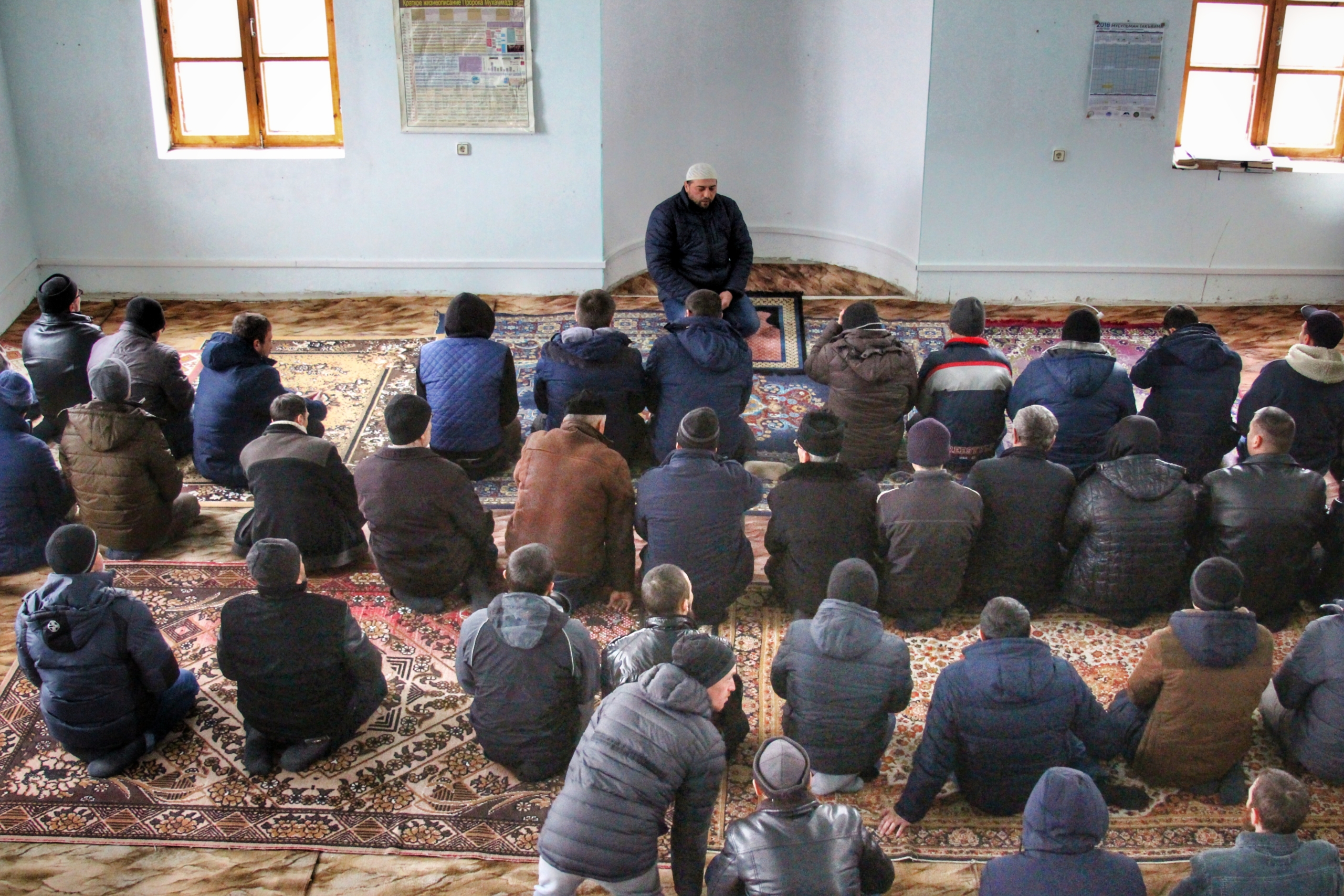 Молитва у мечеті в селищі Новостепне. Фото: Олександра ЄфименкоПід час засідань захист неодноразово звертав увагу суду на відсутність реальних доказів, а також на те, що мечеть у селі, де нібито збиралися фігуранти справи, на той час майже не функціонувала: