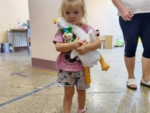 Діти, які отримали допомогу й іграшку “Гуся” під час евакуації з Покровська. Фото надане для видання ZMINA