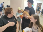 Ми з командою були весь час на евакуаційному пункті, де збиралися батьки з дітьми, які хотіли виїхати з міста. Діти, яких ми бачили, видавалися такими, що загубились і не розуміють, що відбувається і куди вони їдуть. Зрозуміло, що батьки в цей момент їм не могли приділити увагу, бо тягнули свої 35 валіз, а діти в цей час стресували. І в цей момент з’являлися ми з коробкою гусей (іграшка “Гусь”. – Ред.) і великою кількістю смаколиків. Ми дарували дітям цього Гуся, цукерки, смаколики й міцно обіймали. Дитина в стресі, коли все це бачить, що її хтось підтримує, трішки заспокоюєтеся.