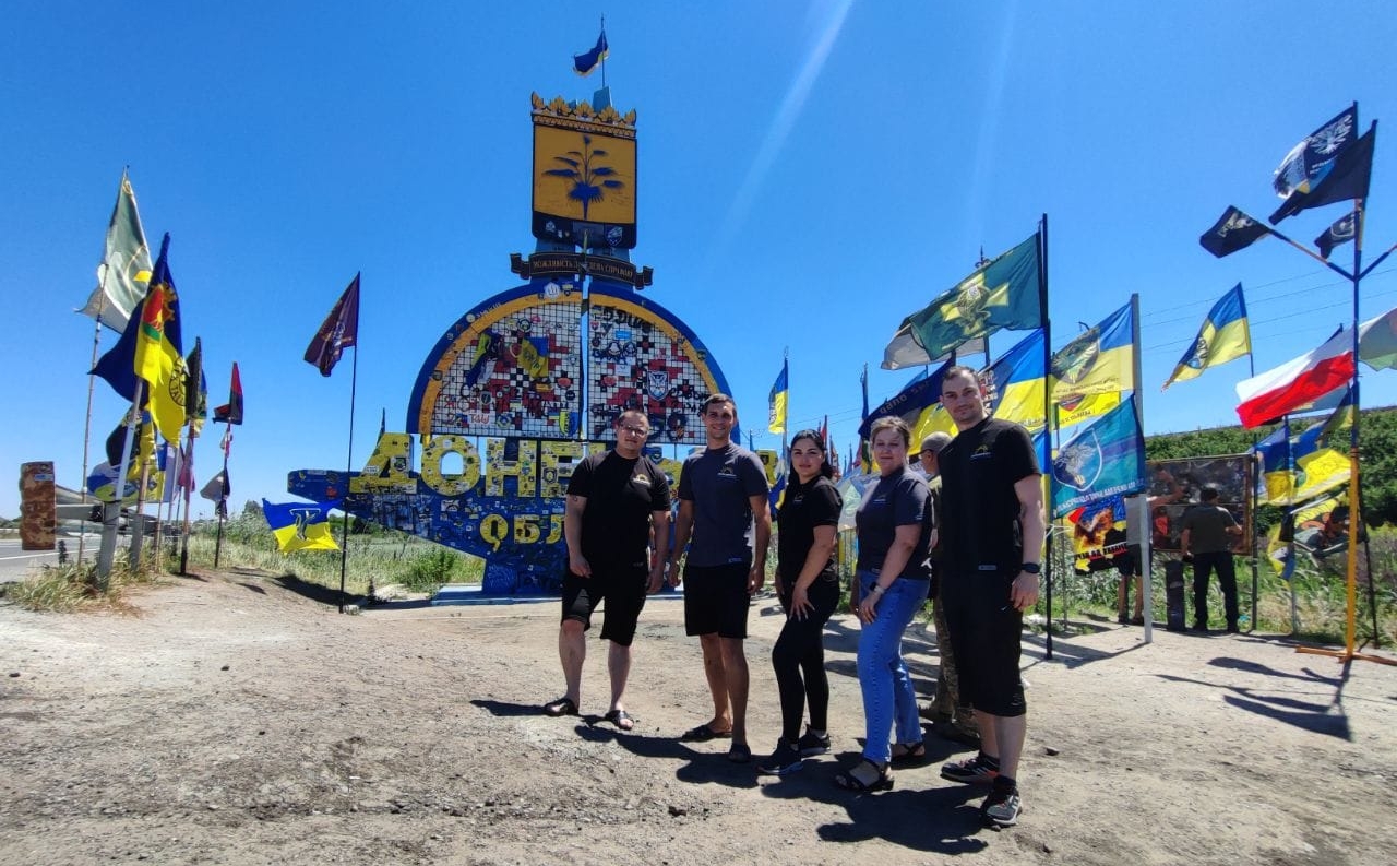 Команда громадської організації “Світло Донбасу” поруч зі статуєю на вʼїзді в Донецьку область. Фото надане для видання ZMINAЯк з’явилася ваша громадська організація “Світло Донбасу”?