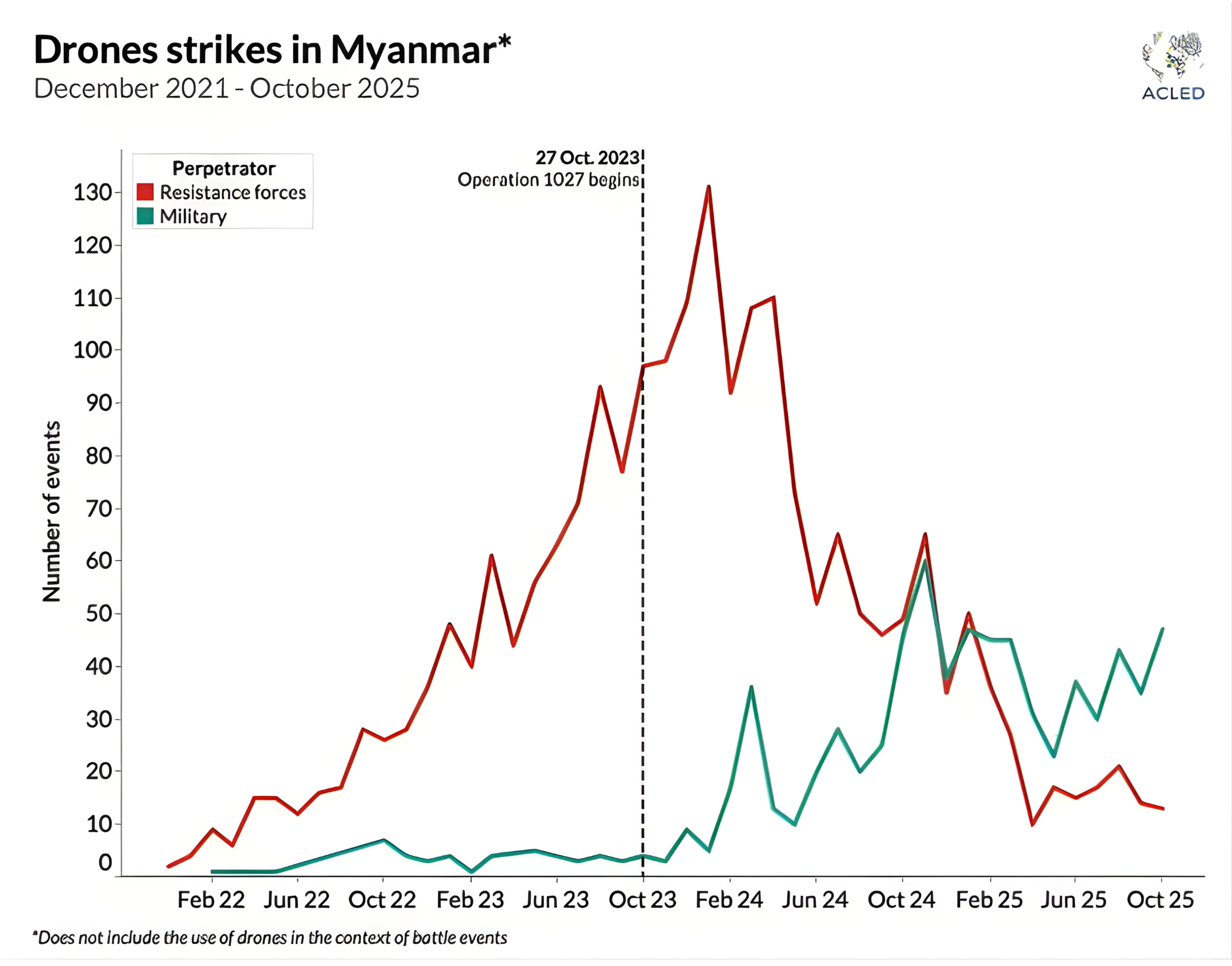 Resistance groups initially gained ground with drone warfare. By late 2024, the military had caught up with its drone capabilities, and now they are only increasing, while the resistance’s drone use is declining.