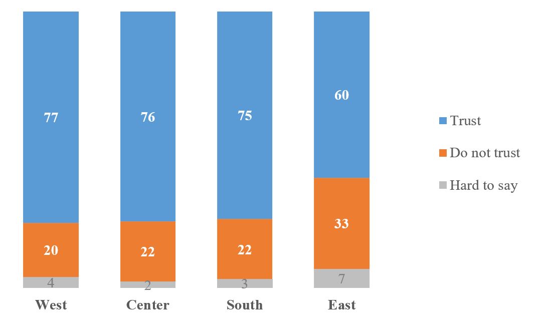 The sociologists note that in all regions of Ukraine, the majority of the population expresses trust in the president, and regional differences are relatively minor.