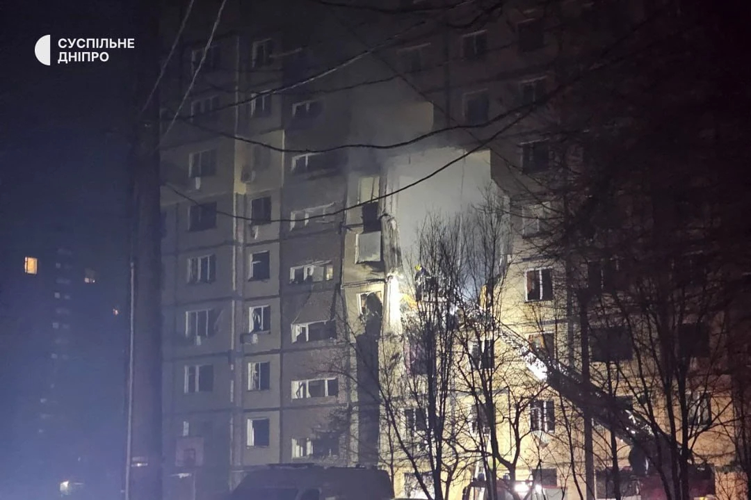 Several floors of a staircase section in an apartment building in Dnipro were damaged.