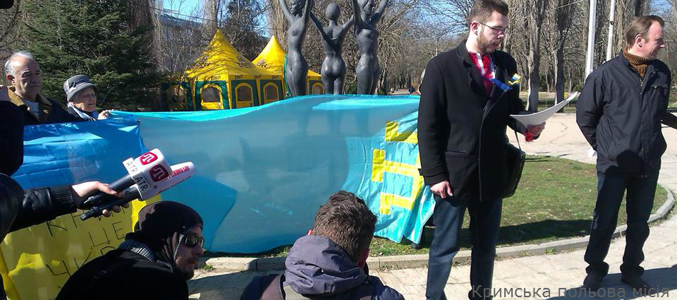 “Припускаю, що причиною затримання стало те, що ми розгорнули українську символіку“, – передає слова організатора акції Леоніда Кузьміна портал “Крим.Реалії“.