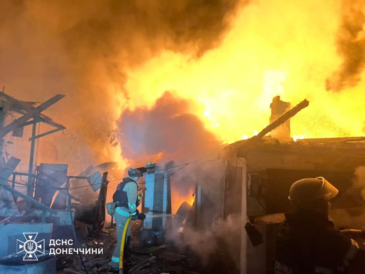 “Святогорівка – обстріл приватного сектору: загинули двоє людей, пожежа знищила два будинки. Рятувальники вилучили їхні тіла та ліквідували пожежу на площі 60 кв.м. Добропілля – зруйновано частину п’ятиповерхівки, рятувальники витягли з-під завалів чоловіка”, – йдеться у повідомлені.