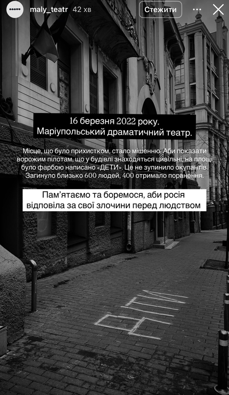 “Наш обов’язок — зберігати пам’ять про цей трагічний день, адже кожна втрата свідчить про крихкість життя та безмежну цінність миру. Згадуючи загиблих, ми вшановуємо тих, хто ніколи не мав би йти з цього світу, й нагадуємо про неприпустимість повторення подібного лиха”, — наголосили в спільному дописі театрів.