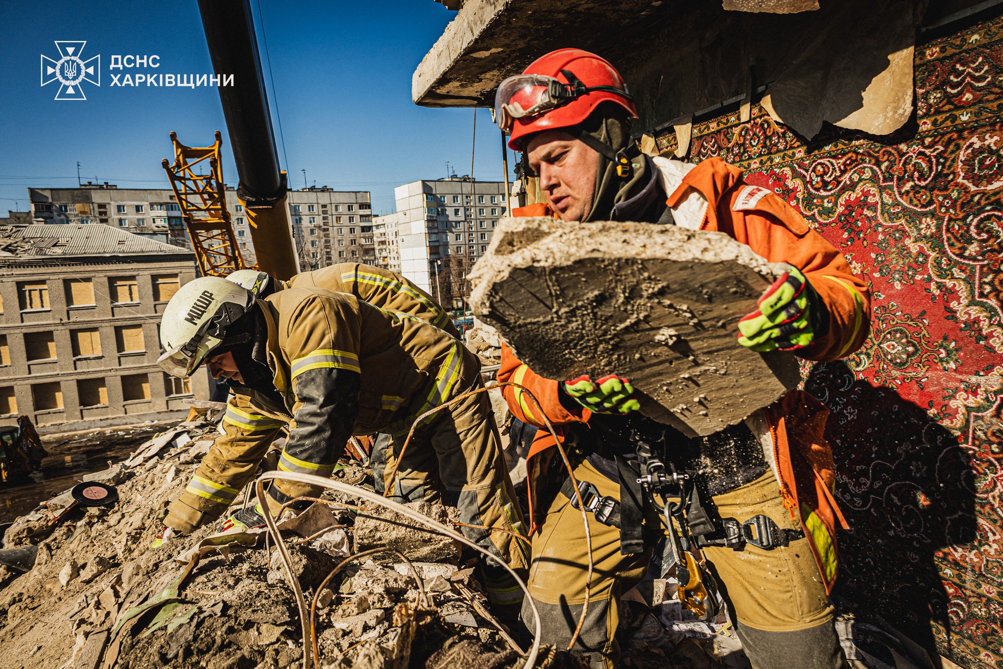 Рятувальники закінчили розбір завалів на місці російського удару по Харкову в ніч на 7 березня. Внаслідок атаки загинули 10 цивільних, серед яких діти, а постраждали ще 16 людей, серед яких так само є неповнолітні.