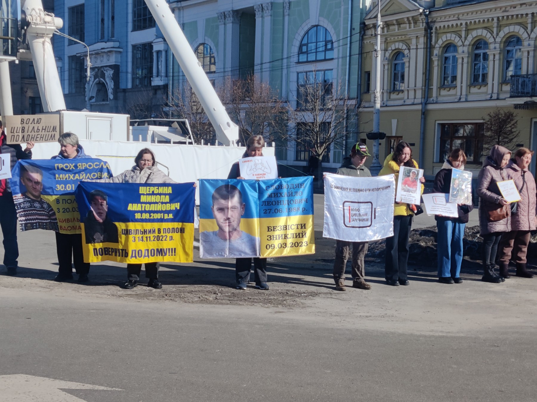 В Києві 7 березня відбулася акція “Чекаємо не квітів – чекаємо своїх“, організована БФ “Цивільні в полоні“: мета заходу — привернути увагу правозахисників, влади та міжнародної спільноти до цивільних українців, яких незаконно утримують у РФ.