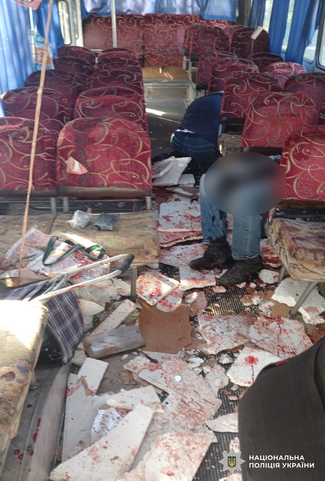 Під час спроби поліціянтів дістати з автобуса тіла загиблих сталося повторне влучання FPV-дрона. У результаті троє працівників поліції зазнали контузій.