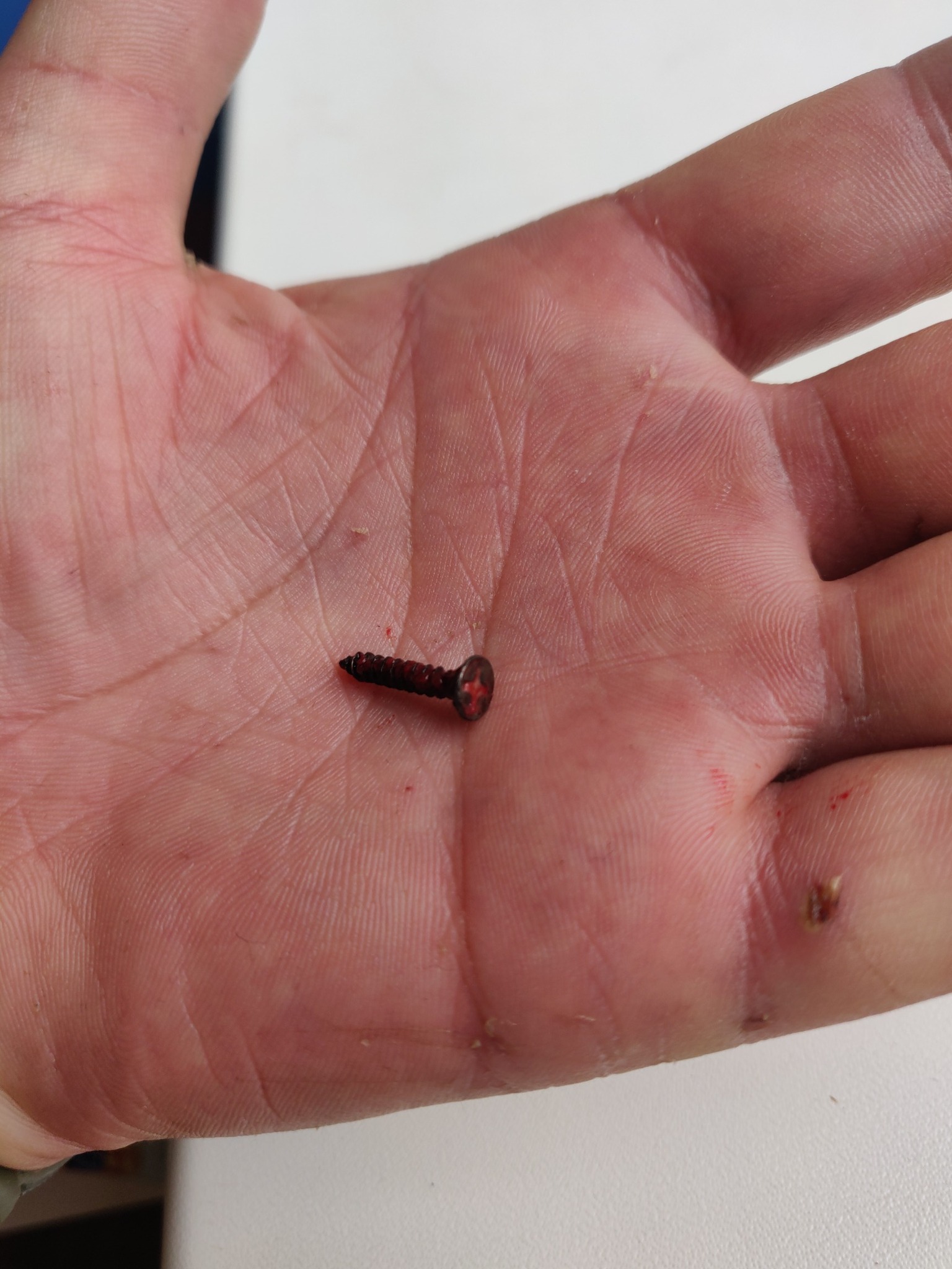 Саморіз, який витягнули з тіла чернівецького фотокореспондента і військовослужбовця Ігоря Константинюка. Фото з його фейсбукуВін також опублікував світлину із саморізом, який витягли з руки, та медичну довідку з позначкою “300”. Військовий планує зробити із саморіза фішку чи мініатюрку для настільних ігор.