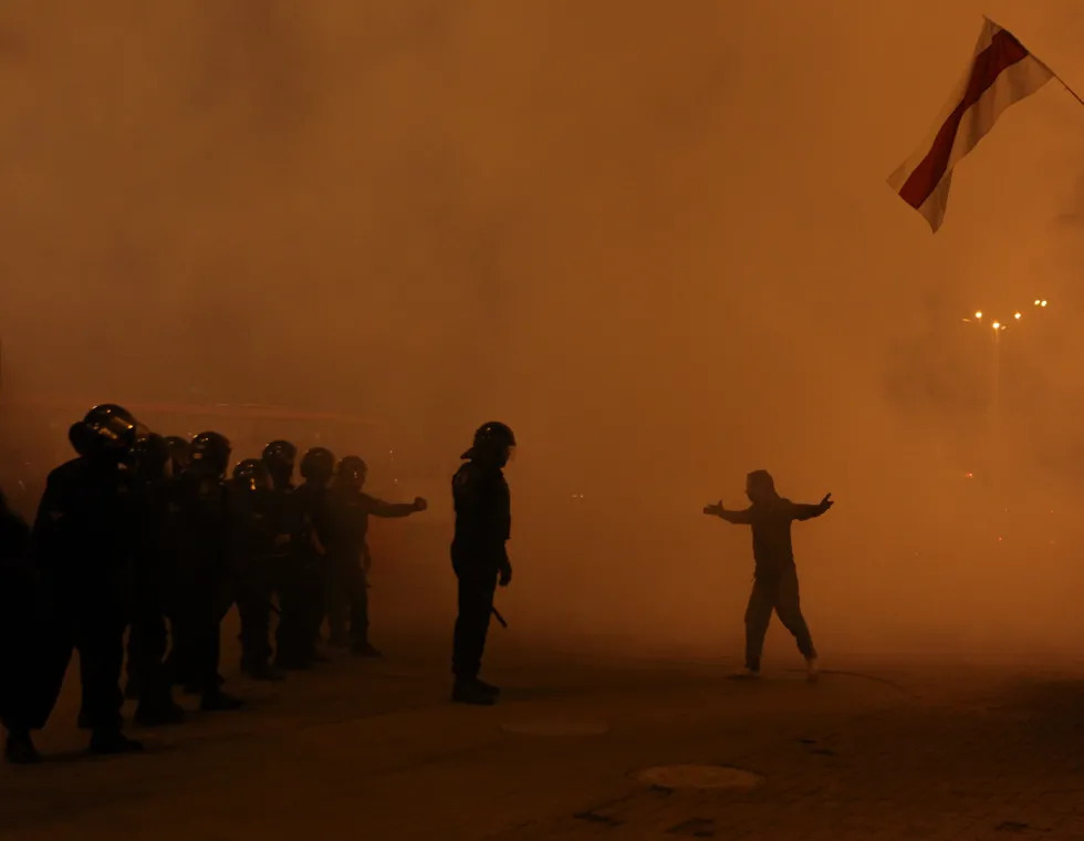 Силовики та протестувальник на вулиці в Мінську у 2020 році. Тодішні акції лишаються найпоширенішою причиною для переслідування людей у Білорусі цьогоріч. Фото: NullПереслідує режим Лукашенка й підлітків, як-от у так званій справі “Чорних солов’їв”.