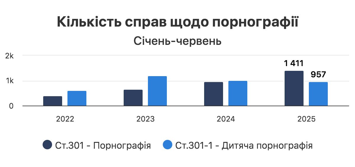 За неповний поточний рік правоохоронці відкрили 2,3 тисячі кримінальних проваджень за статтею щодо порнографії, а у січні та березні слідчі встановили рекорд за усі роки за кількістю відкритих проваджень.