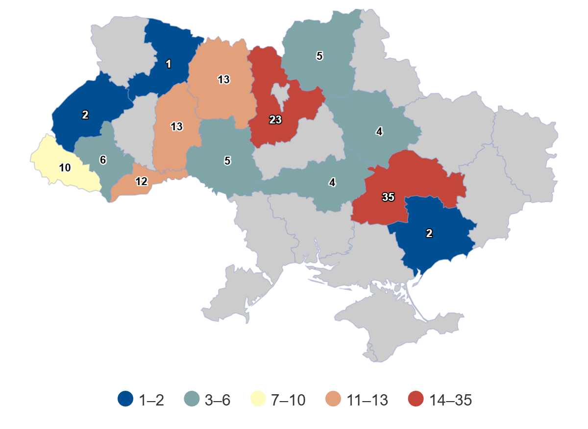 Серед загальної кількості справ, де просять позбавити водійських прав військовозобовязаних, найбільше на Дніпропетровщині — 35 справ, далі йде Київщина із 23 справами, а Хмельниччина та Житомирщина мають по 13 кожна.