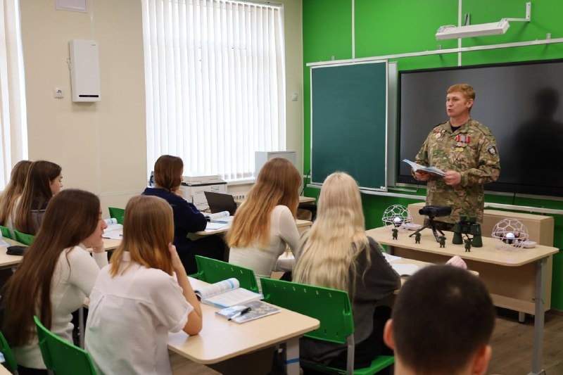 Російський військовий Павло Клясюк веде урок школярам у Севастополі. Фото: з російських медіаТак, у школі № 39 уроки проводить Павло Клясюк – учасник війни проти України. Після служби він пропагує війну серед дітей, зокрема вчить військових і тактичних навичок.