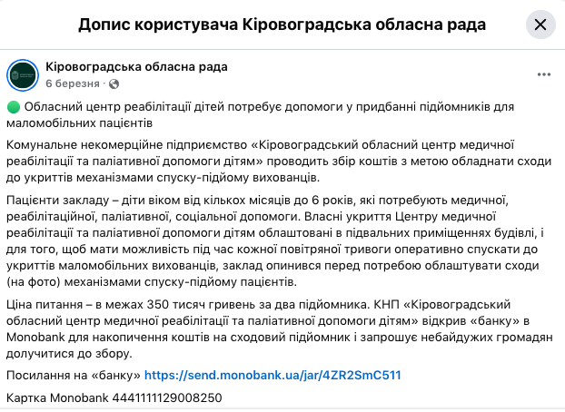 Окрім цього, лишаються питання до умов, у які повертаються неповнолітні. Так, на сторінці облради Кропивницького цього року публікували оголошення про збір на облаштування сходів до укриття центру, куди повертають дітей з Австрії.