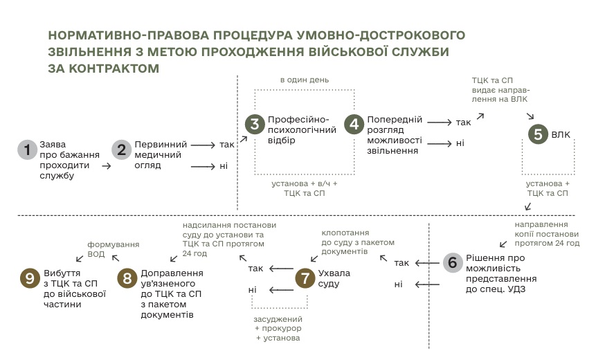 Також в ув’язнених є можливість долучитись до війська, скориставшись правом на умовно-дострокове звільнення за статтею 81 КК України.