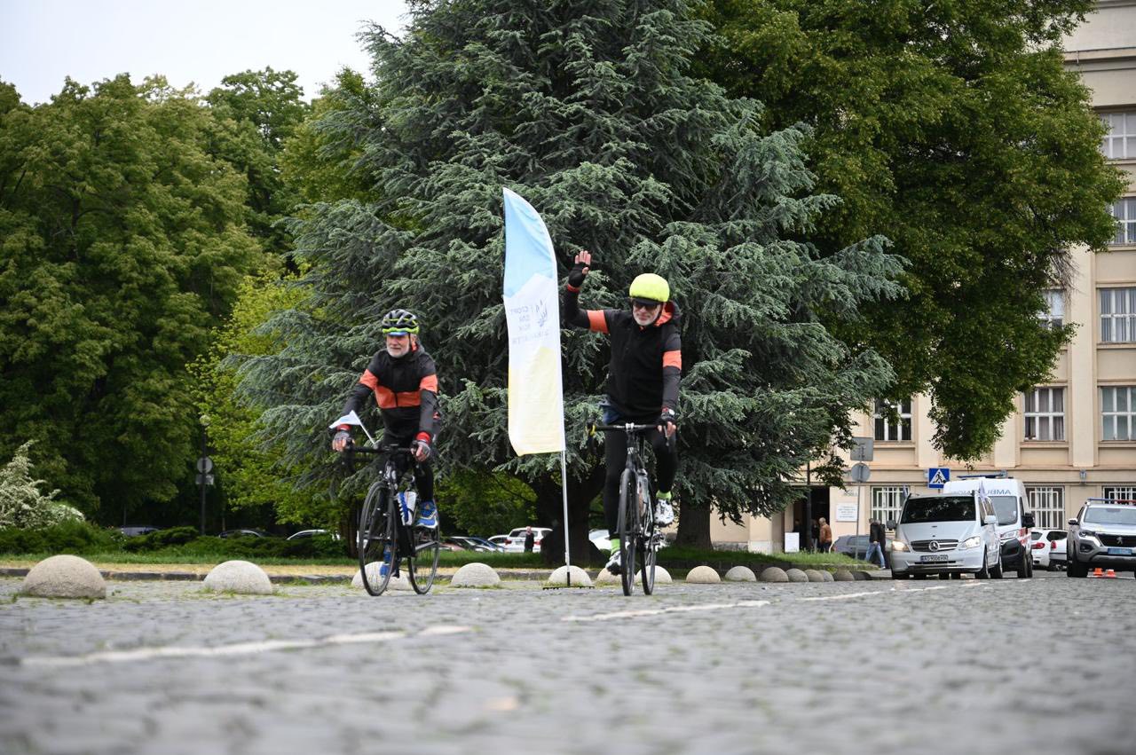 Фото: МінветеранівЇхній маршрут пролягає від Ужгорода до Києва через низку міст, зокрема Стрий, Львів, Радивилів, Рівне, Звягель, Житомир, Бородянку, Ворзель, Бучу, Ірпінь, Вишгород. Торік обидва подолали загалом 13 населених пунктів, а на шляху до них приєднувалися велосипедисти-ветерани та інші охочі.