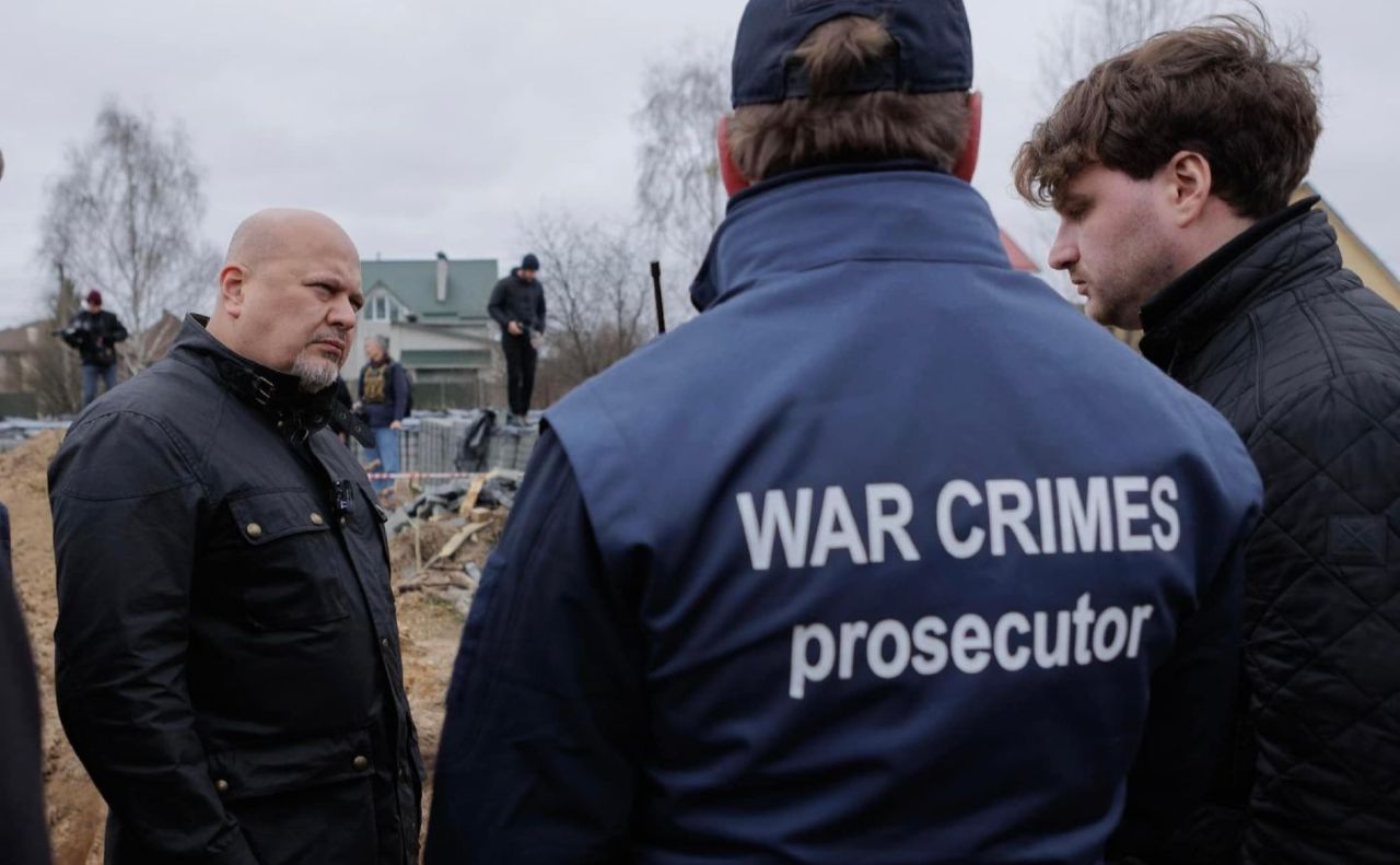 Головний прокурор МКС Карім Хан (ліворуч) у Бучі на Київщині після деокупації регіону ЗСУ у 2022 році. Фото: Офіс генерального прокурораСанкції США спрямовані безпосередньо проти співробітників суду, яких позбавили віз та заблокували доступ до фінансів. Стосуються обмеження всіх, хто допомагає розслідуванням щодо громадян США та союзників країни.