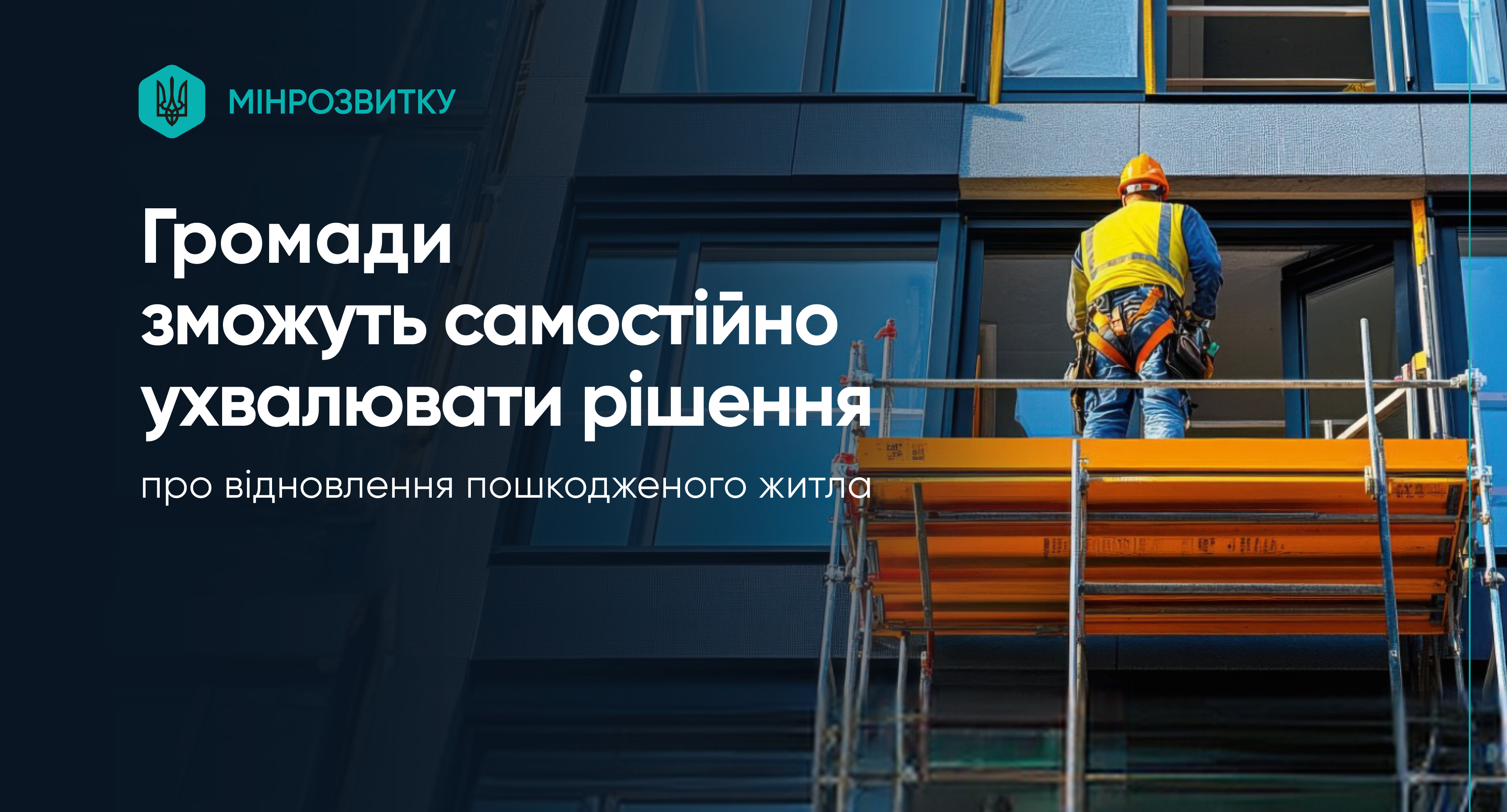 Уряд ухвалив рішення, яке дозволяє громадам самостійно запускати процес відновлення пошкоджених багатоквартирних будинків та гуртожитків у межах експериментального проєкту. Відповідні зміни до постанови Кабміну № 934 розробили в Міністерстві розвитку громад та територій.