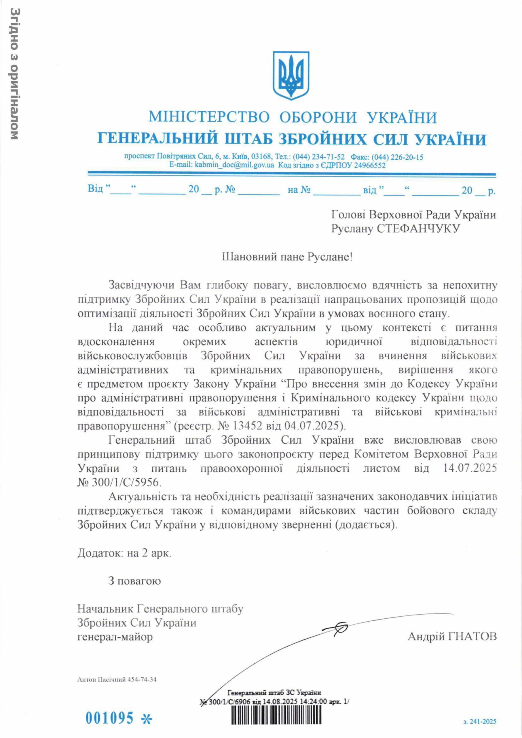 Також отримали листа з “принциповою підтримкою” ідеї від Генштабу ЗСУ, який підкріпили зверненням командирів військових частин бойового складу війська.