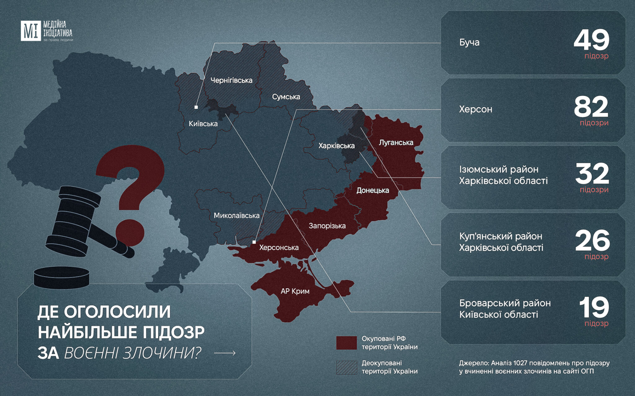 Херсон та Буча лідирують за кількістю підозр у воєнних злочинах – МІПЛ