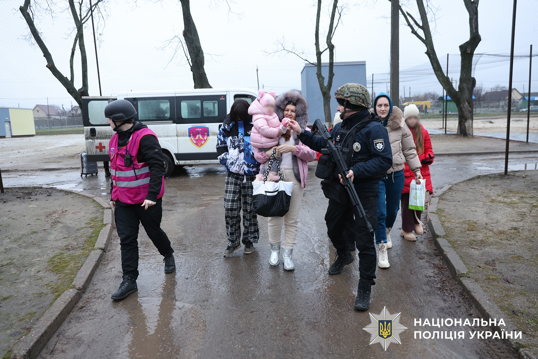 Із селища Кушугум Запорізької області поліцейські спільно з волонтерами евакуювали 33 людини, серед яких — 19 дітей. Евакуація відбулася на світанку через постійну загрозу з боку російських безпілотників.