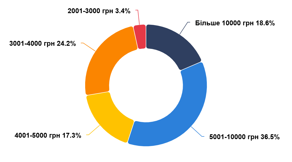 Понад 1,8 мільйона людей мають більше як 10 тисяч гривень пенсії, ще понад 3,6 мільйона – від 5 до 10 тисяч, а понад 1,7 мільйона – від 4 до 5 тисяч гривень. Аналітики звертають увагу, що найбільше пенсіонерів в країні отримують від 5 до 10 тисяч гривень.
