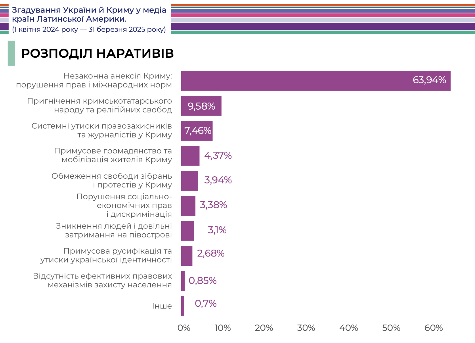 Лише 15% публікацій про тимчасово окупований Крим у медіа Латинської Америки містять згадки про порушення прав людини, разом з випадками насильницьких зникнень, незаконних арештів, переслідування журналістів і активістів.