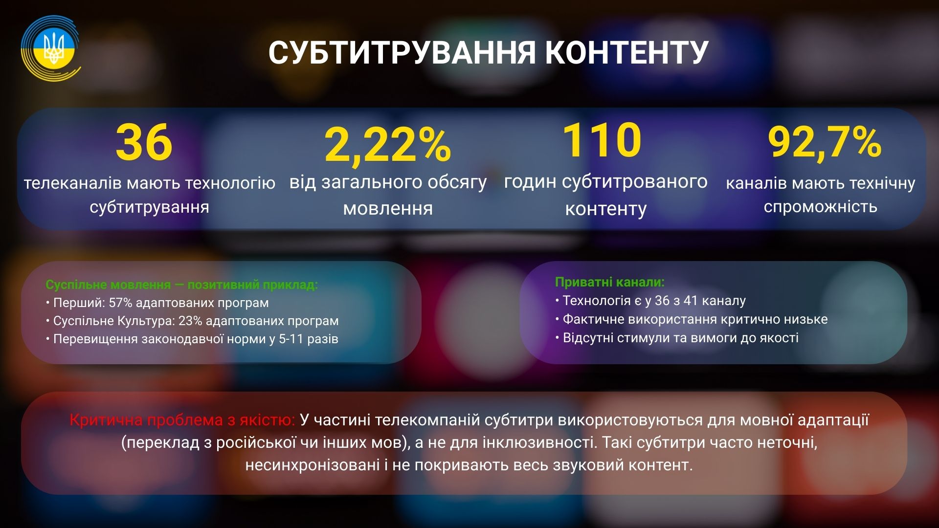 Національна рада наголосила, що ці результати свідчать про системну проблему доступності українського телебачення. Вона закликала мовників усвідомити важливість інклюзивного доступу до інформації як одного з базових прав людини.