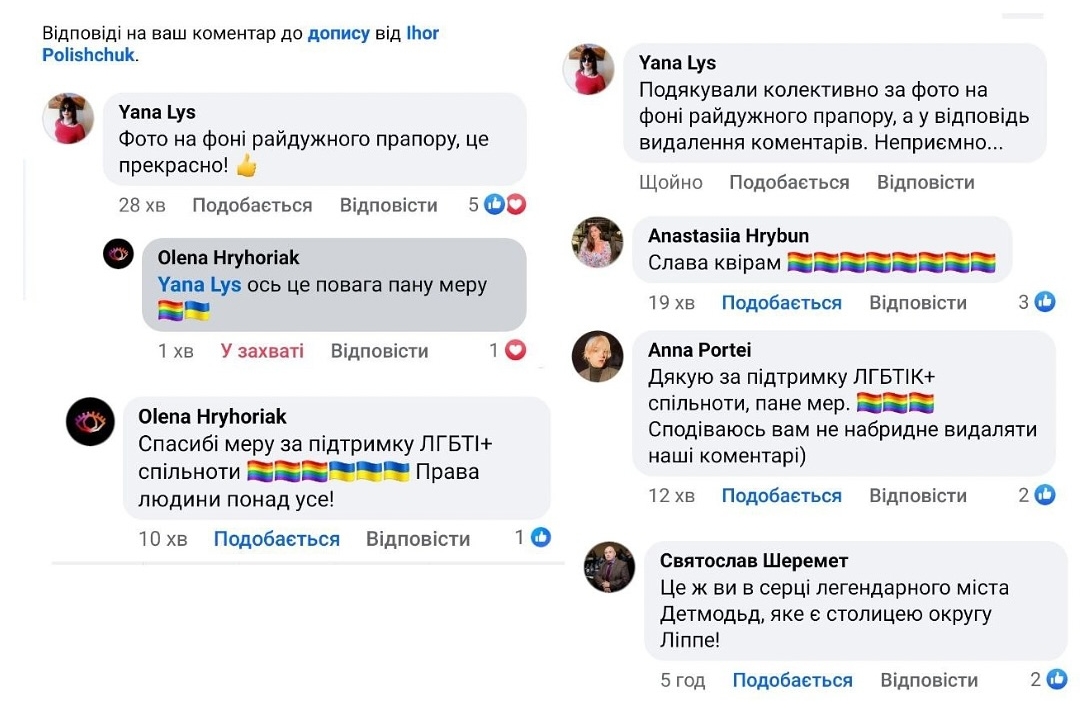 Фото з фейсбук-сторінки Ігоря ПоліщукаНевдовзі мер видалив усі ці коментарі, а їхніх авторок та авторів – заблокував.