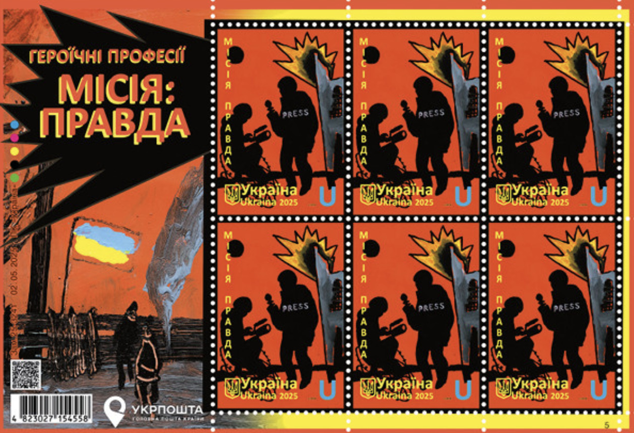 “Укрпошта” оголосила початок передзамовлення на нову поштову марку “Місія: правда” із серії “Героїчні професії”, яку присвятили журналістам, що працюють у зоні бойових дій.