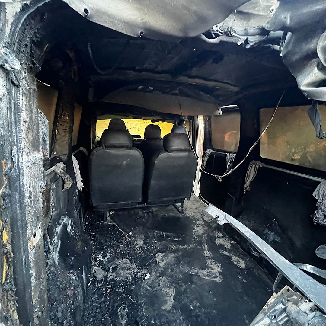 Випалений салон цивільної автівки, по якій поцілили російські військові на Дніпропетровщині. Фото: НацполіціяУ Херсонській області доба 24 вересня минула без загиблих, але поранень дістали щонайменше 14 людей.