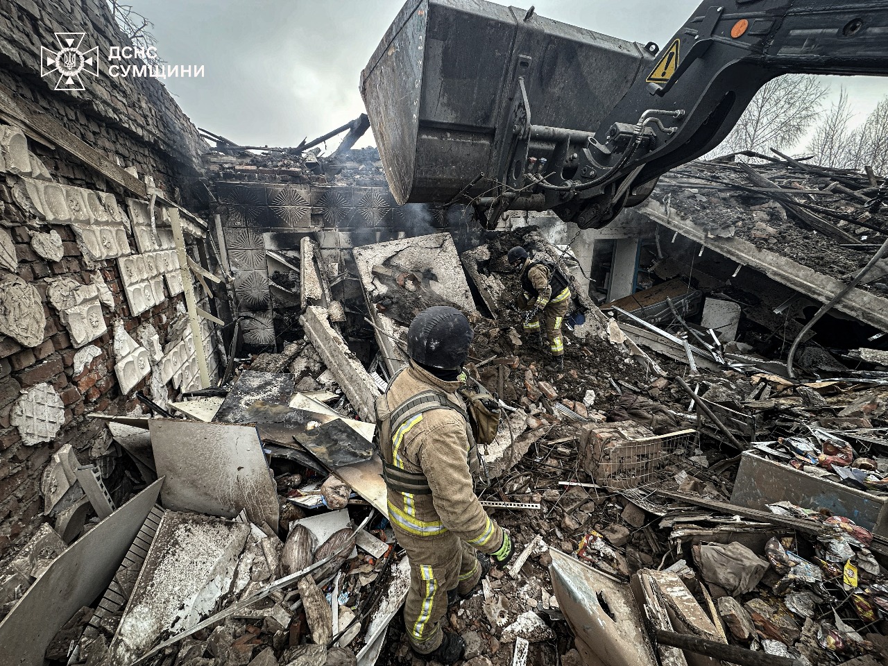 Розбір завалів на місці російського удару на СумщиніНа Донеччині через російські удари травмувались ще двоє людей у Костянтинівці та Новоіверському, по яких вдарили авіацією, артилерією та безпілотниками. Загалом за добу російські військові вдарили по Донецькій області понад 2,1 тисячі разів, зруйнувавши понад два десятки цивільних об’єктів, серед яких чимало житлових будинків.