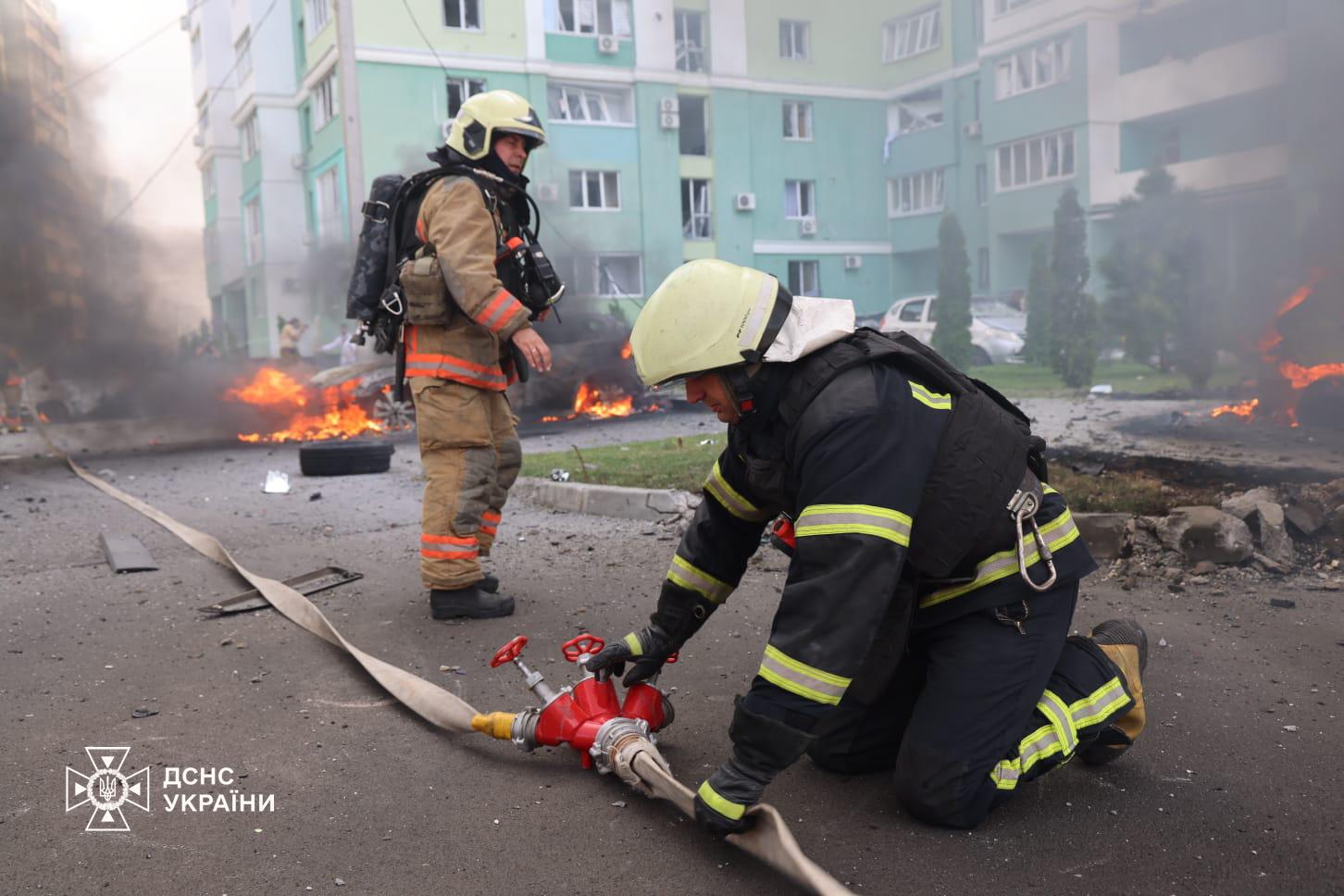 Ліквідація російського удару по Харкову 24 липня 2025 рокуНа Херсонщині внаслідок обстрілів армії РФ троє потерпілих: двоє з них травмувались після дронового удару, а ще одна жінка – після обстрілу керованими авіабомбами по обласному центру.