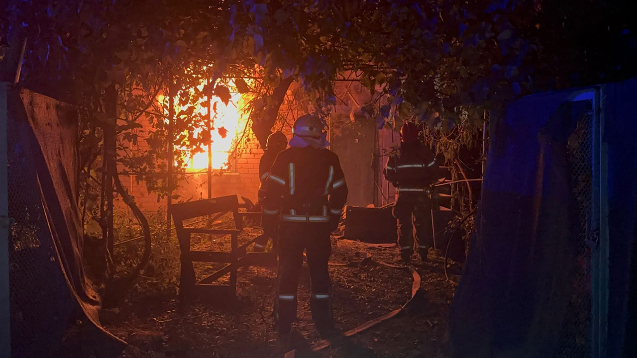 Житловий будинок, охоплений полум’ям після російського обстрілу Новоандріївки 24 липня 2025 року. Фото: НацполіціяДо зведення за минулу добу потрапила й Черкащина, що трапляється не часто. Рано-вранці росіяни запустили по Черкасах ракети, через що травмувались 12 людей, серед яких 9-річний хлопчик. Поліціянти, фіксуючи наслідки удару, отримали від містян понад сотню звернень.