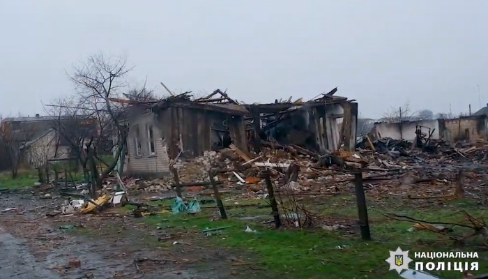 Один зі зруйнованих будинків у Зеленому Гаю, де досі лишаються цивільні попри небезпеку. Скриншот відеоОкрім евакуацій, підрозділ “Білий янгол” також доставив гуманітарку до села Зелений Гай, де досі лишаються мешканці.