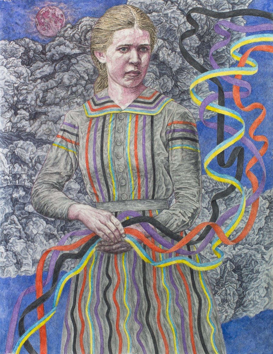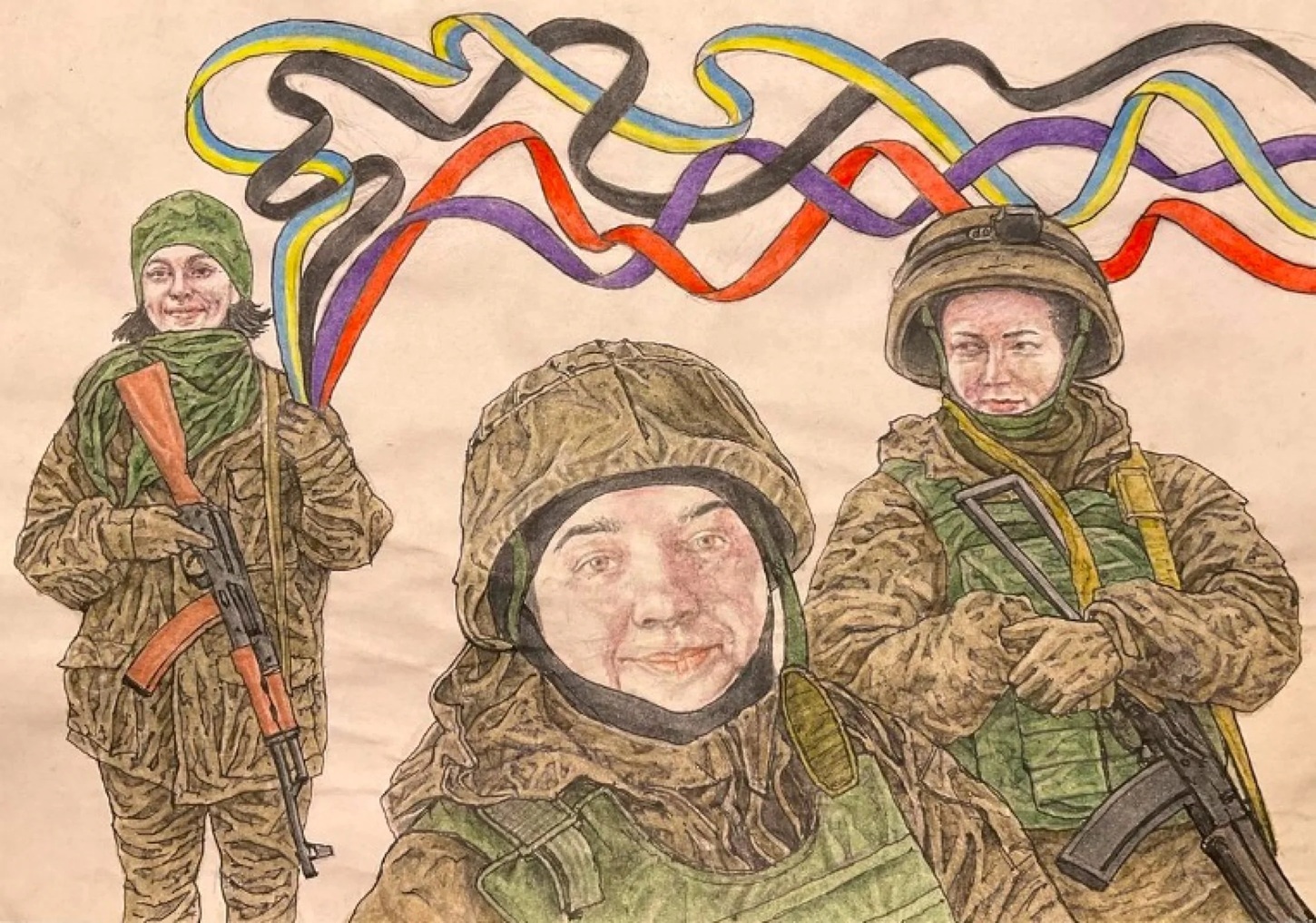 Давид Чичкан “Леся Українка і стрічки її боротьби”, 2021. Eкспонується в галереї “Артсвіт” у Дніпрі на виставці “Дивлячись у розриви II”. Джерело: УП.ЖиттяПрацював із графікою, живописом, стріт-артом і перформансом, позиціював себе як художник-анархіст.