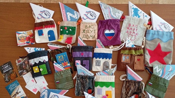 Школярі під керівництвом місцевих “педагогів” виготовили листівки у вигляді фронтових трикутників із символікою Z, російським триколором та радянськими зірками. У них вон “висловили гордість за військових, подякували їм за службу та побажали якнайшвидшого повернення з перемогою”, пишуть окупанти.