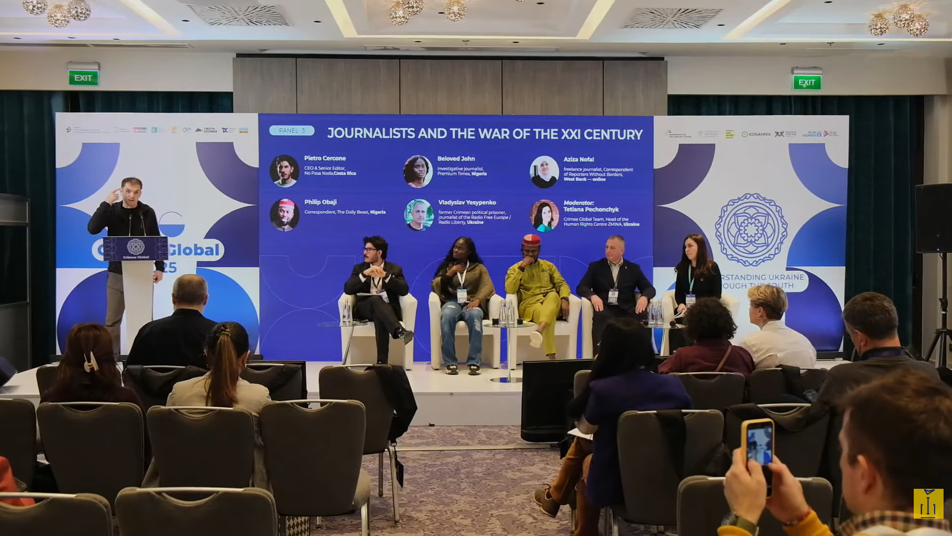 Учасники конференції “Журналісти та війна XXI століття”. Скриншот з ютубу “Кримська платформа”Учасники заходу наголосили, що сучасні конфлікти – зокрема, російська агресія проти України та війна в Палестині – суттєво посилюють ризики для медійників, адже з 2023 року там загинули щонайменше 248 журналістів, тоді як Росія з початку повномасштабного вторгнення скоїла 839 злочинів проти журналістів в Україні.