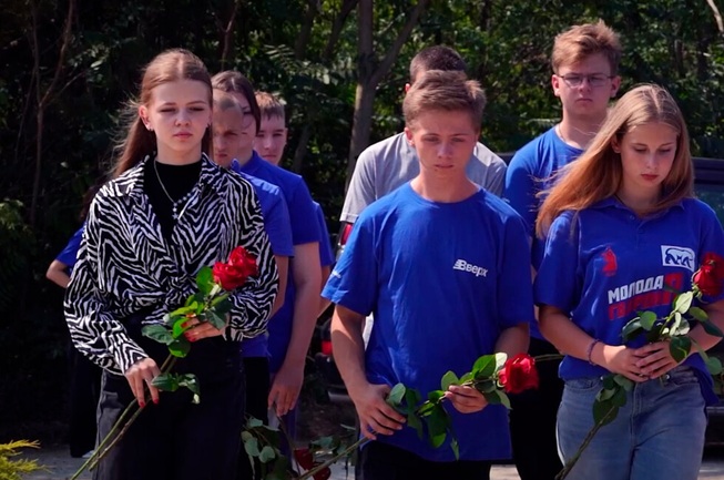Фото з проросійських медіаОрганізатори “акції” — пропагандистська організація “Молода республіка” та регіональне відділення “Молодої гвардії Єдиної Росії” — у день народження Толстих привели молодь Донецька на цвинтар “Донецьке море”, де ті поклали квіти на його могилу.